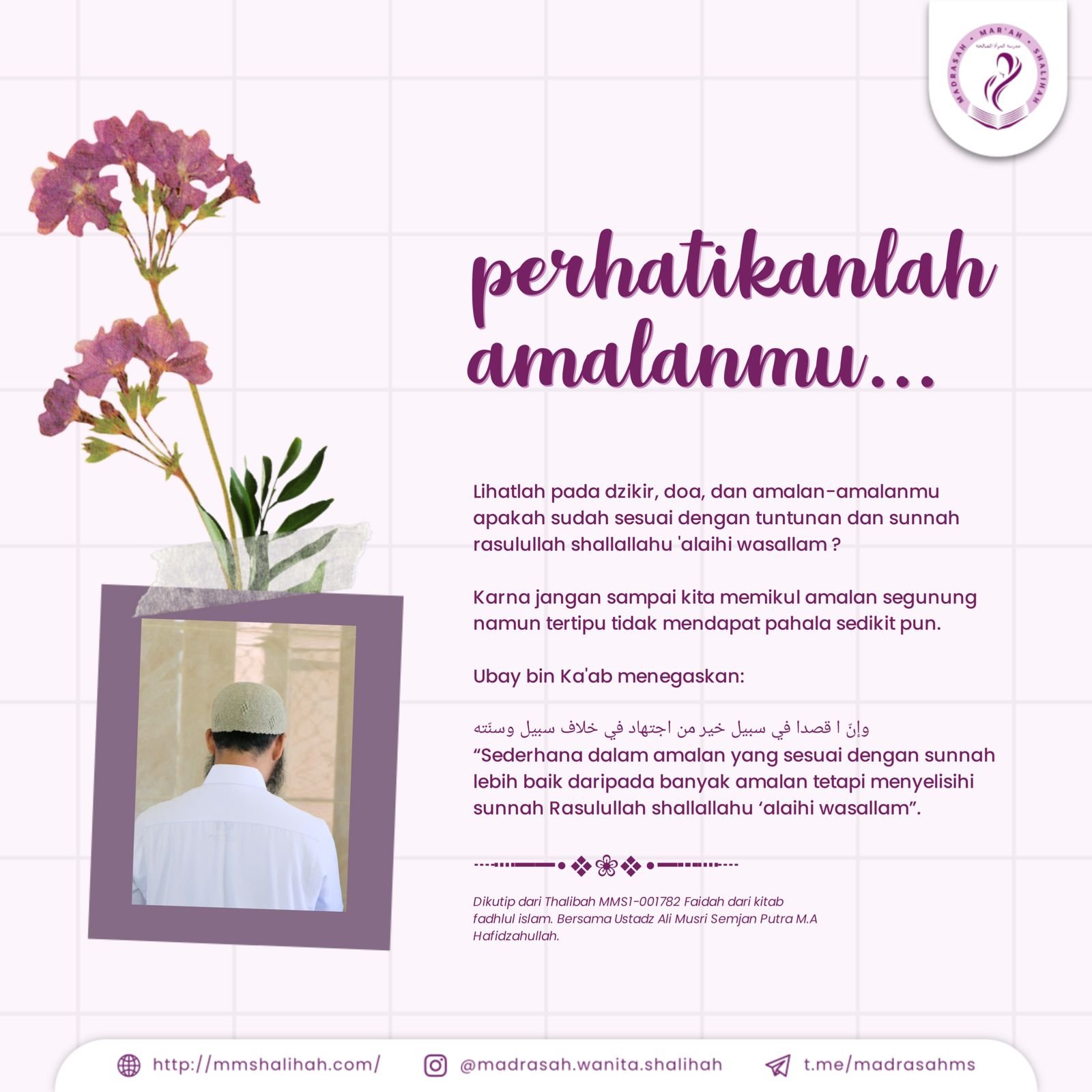 Lihatlah pada dzikir, doa, dan amalan-amalanmu apakah sudah sesuai dengan tuntunan dan sunnah rasulullah shallallahu ‘alaihi wasallam ?