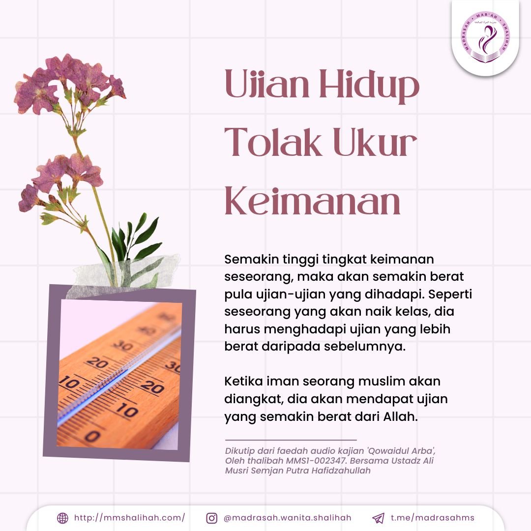 Semakin tinggi tingkat keimanan seseorang, maka akan semakin berat pula ujian-ujian yang dihadapi.