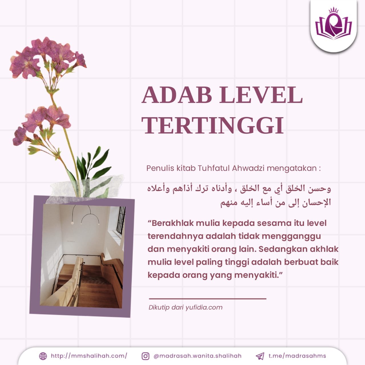 Penulis kitab Tuhfatul Ahwadzi mengatakan, وحسن الخلق أي مع الخلق ، وأدناه ترك أذاهم وأعلاه الإحسان إلى من أساء إليه