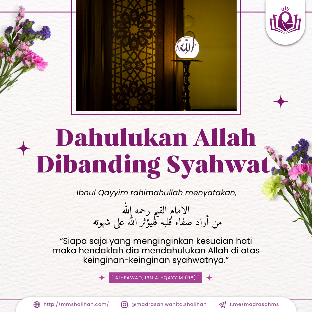 الامام القيم رحمه الله من أراد صفاء قلبه فليؤثر الله على شهوته Siapa saja yang menginginkan kesucian hati maka hendaklah dia