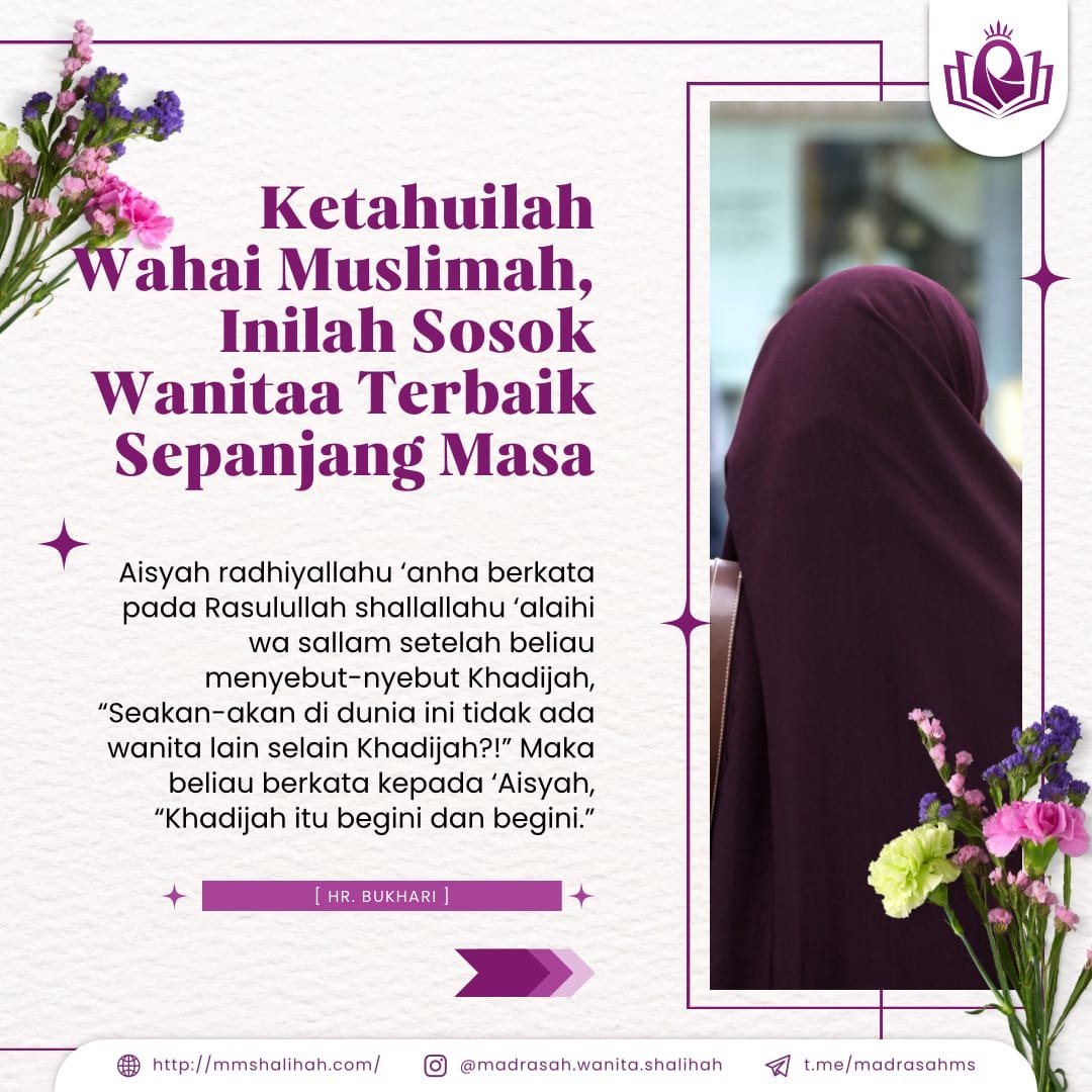 *KETAHUILAH WAHAI MUSLIMAH, INILAH SOSOK WANITA TERBAIK SEPANJANG MASA* Saudariku muslimah, maukah engkau menjadi khadijah yang berikutnya??? Ia adalah wanita yang