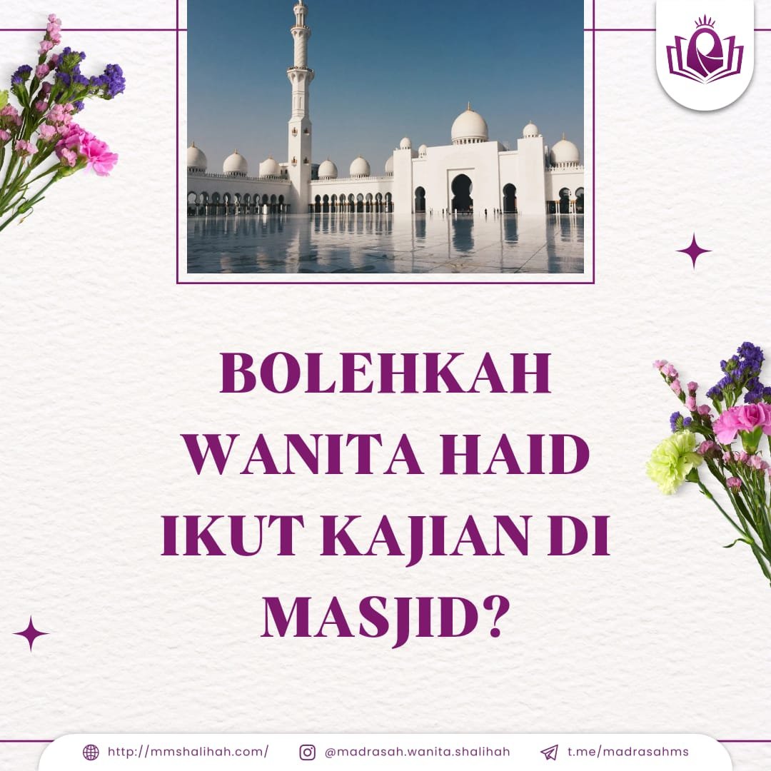 BOLEHKAH WANITA HAID KAJIAN DI MASJID? Tidak ada yang melarang manusia untuk beribadah. Sampaikan dia dalam kondisi berhalangan karena haid atau