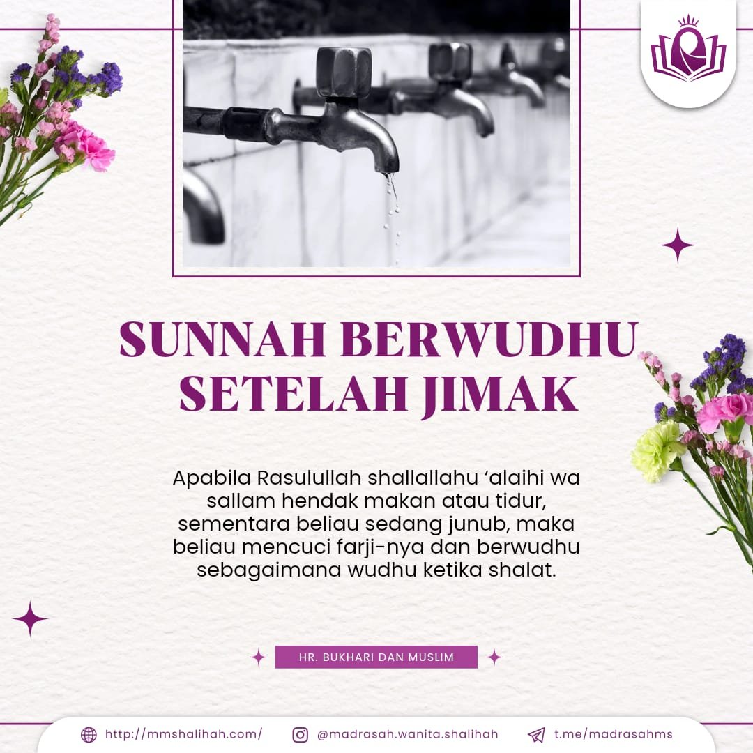 SUNNAH BERWUDHU SETELAH JIMAK Islam adalah agama yang sempurna, yang memberikan tuntunan kepada seluruh kegiatan manusia. Salah satunya adalah tuntunan untuk