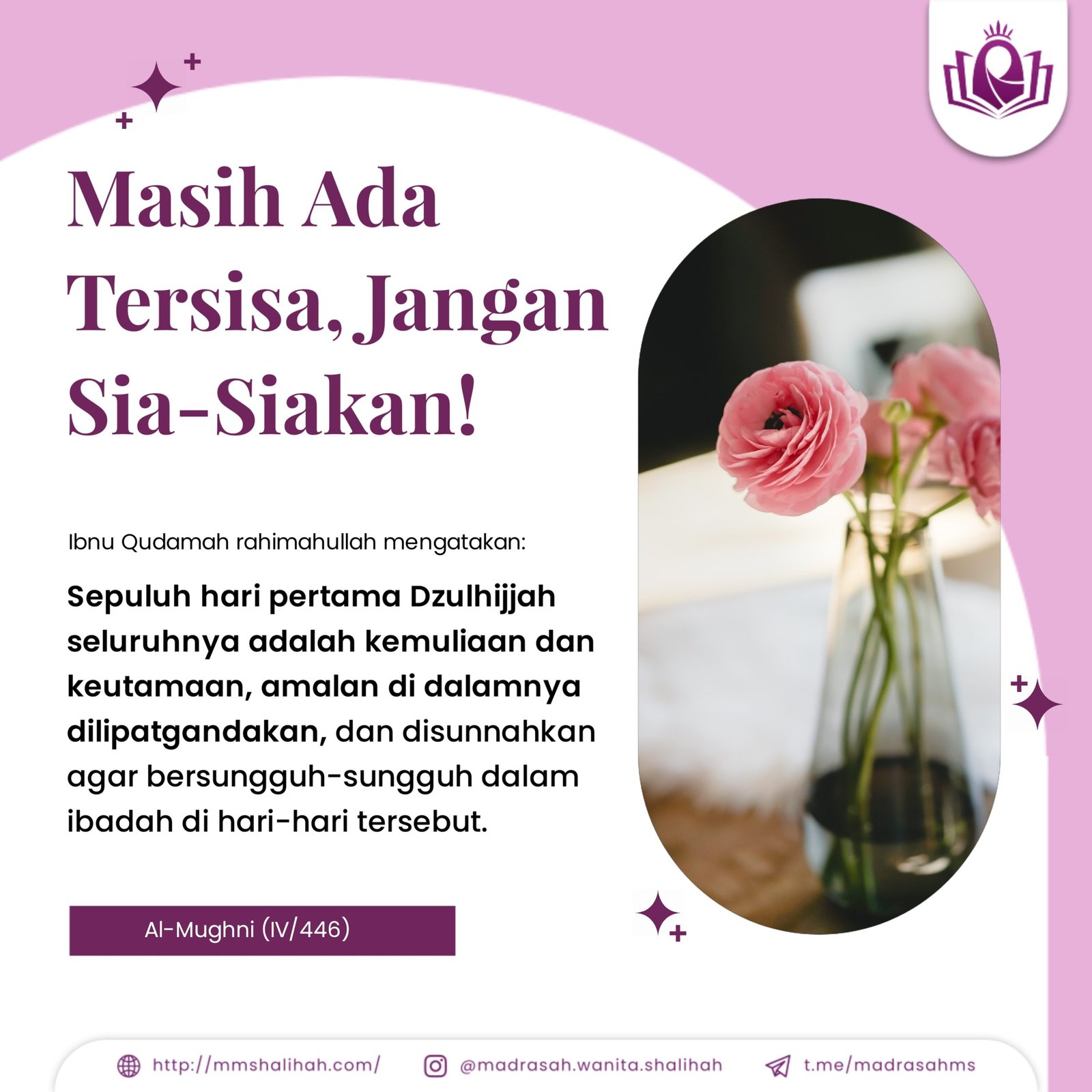 Sepuluh hari pertama bulan Dzulhijjah adalah hari-hari dunia terbaik secara mutlak. Hal itu