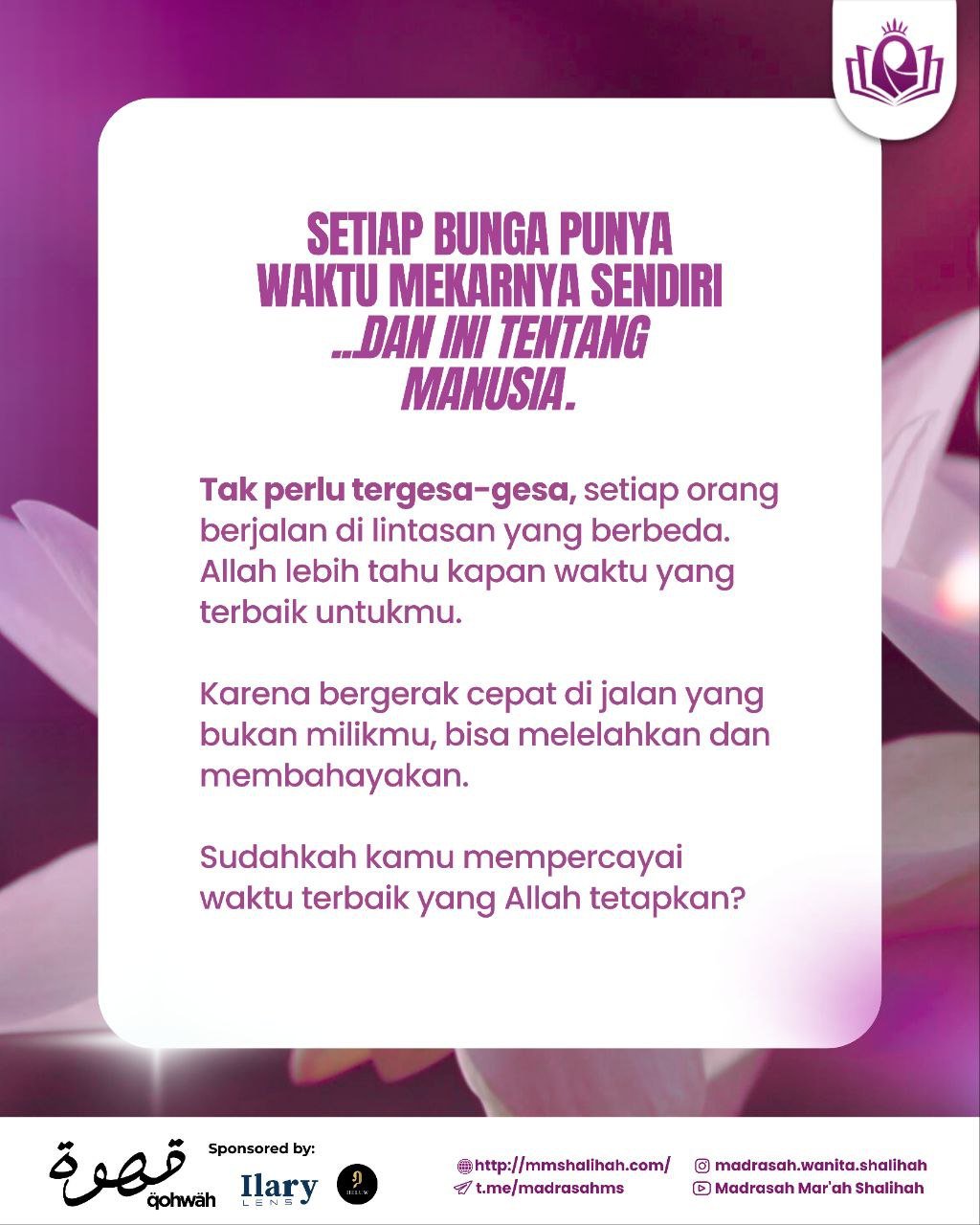 Thalibaat Madrasah Mar’ah Shalihah Senin, 05 Januari 2026 Setelah jeda, kita kembali melangkah dengan...