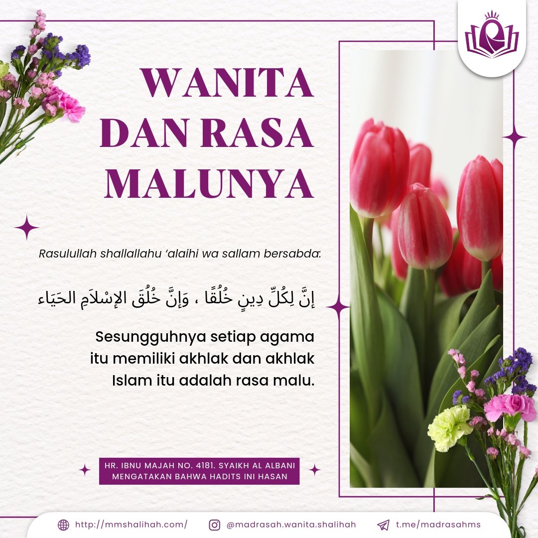 “Muslimah cantik, menjadikan malu sebagai mahkota kemuliaannya…” (SMS dari seorang sahabat) Membaca SMS di atas, mungkin pada sebagian orang menganggap biasa
