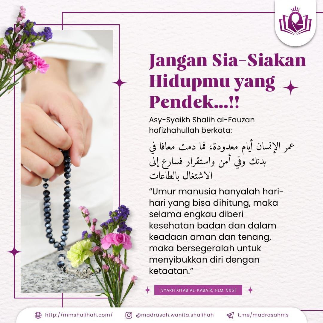 Hasan Al Bashri mengatakan, ابن آدم إنما أنت أيام كلما ذهب يوم ذهب بعضك “Wahai manusia, sesungguhnya kalian hanya