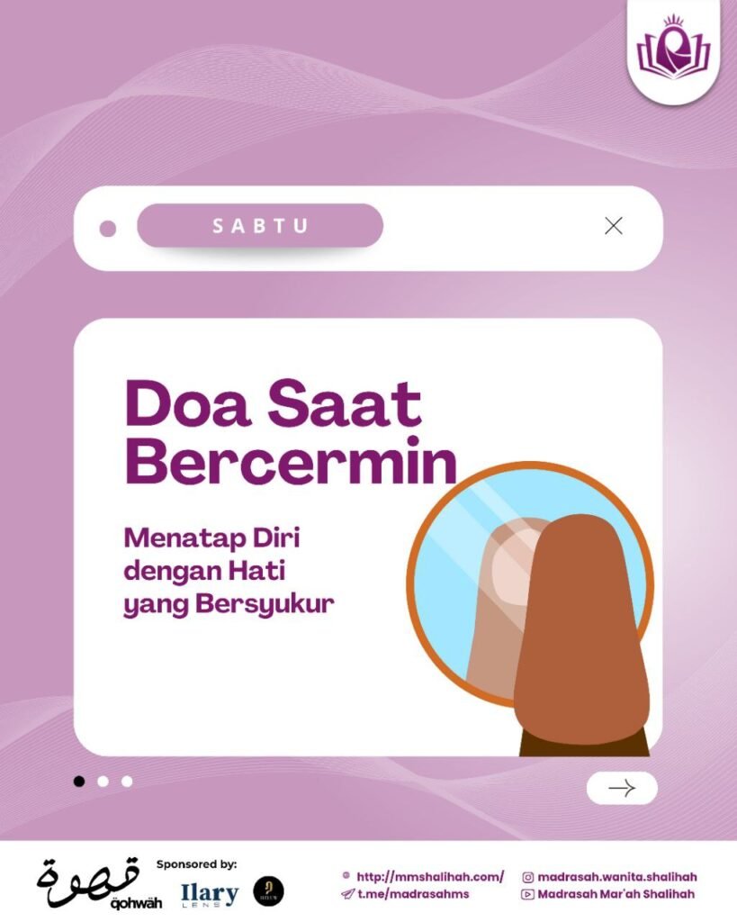 Mari biasakan doa ini setiap bercermin, karena kecantikan sejati bukan hanya di wajah, tapi di hati dan akhlak yang