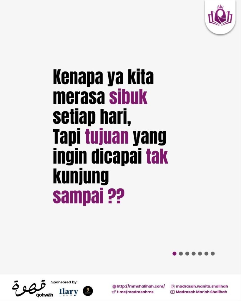 Kita hidup di masa ketika sibuk sering disalahartikan sebagai kemajuan. Padahal tidak semua kesibukan membawa kita ke tujuan yang benar-benar kita