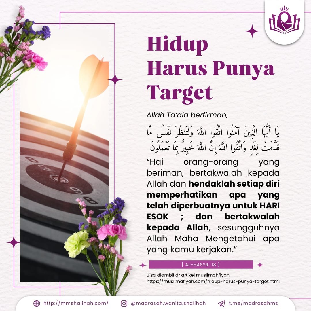Hidup harus punya target, jangka pendek, jangka menengah, dan jangka panjang. Membuat program pribadi untuk mencapai target, jika tidak hidup hanya