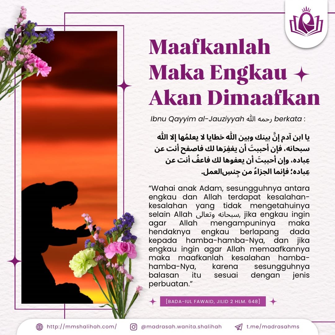 Maafkanlah dia agar Allah memaafkan kita. Semoga kita bisa menghilangkan dendam, kesalahan orang