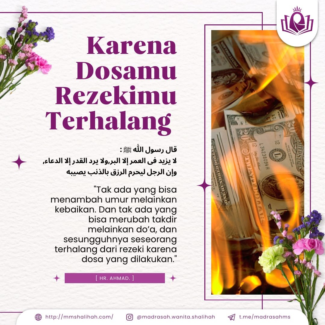 Dosa yang dilakukan oleh seseorang dapat berpengaruh terhadap rezeki yang Allah berikan kepadanya.