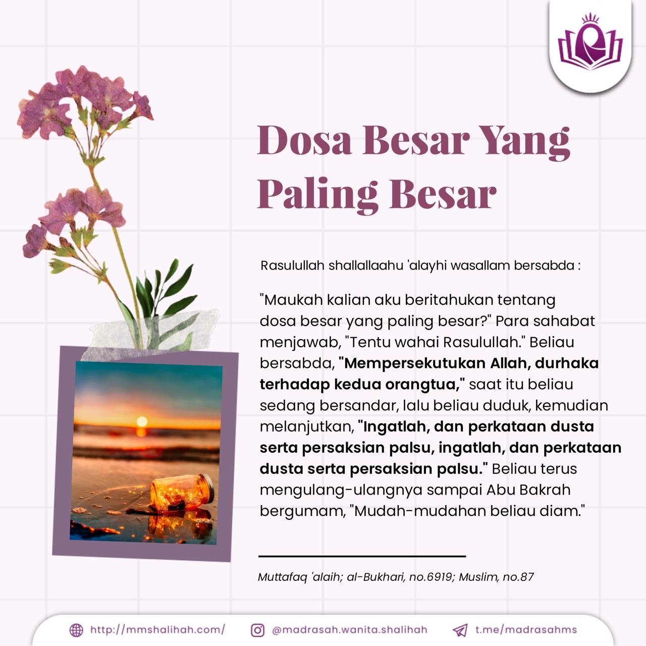 Rasulullah shallallaahu ‘alayhi wasallam bersabda : “Maukah kalian aku beritahukan tentang dosa