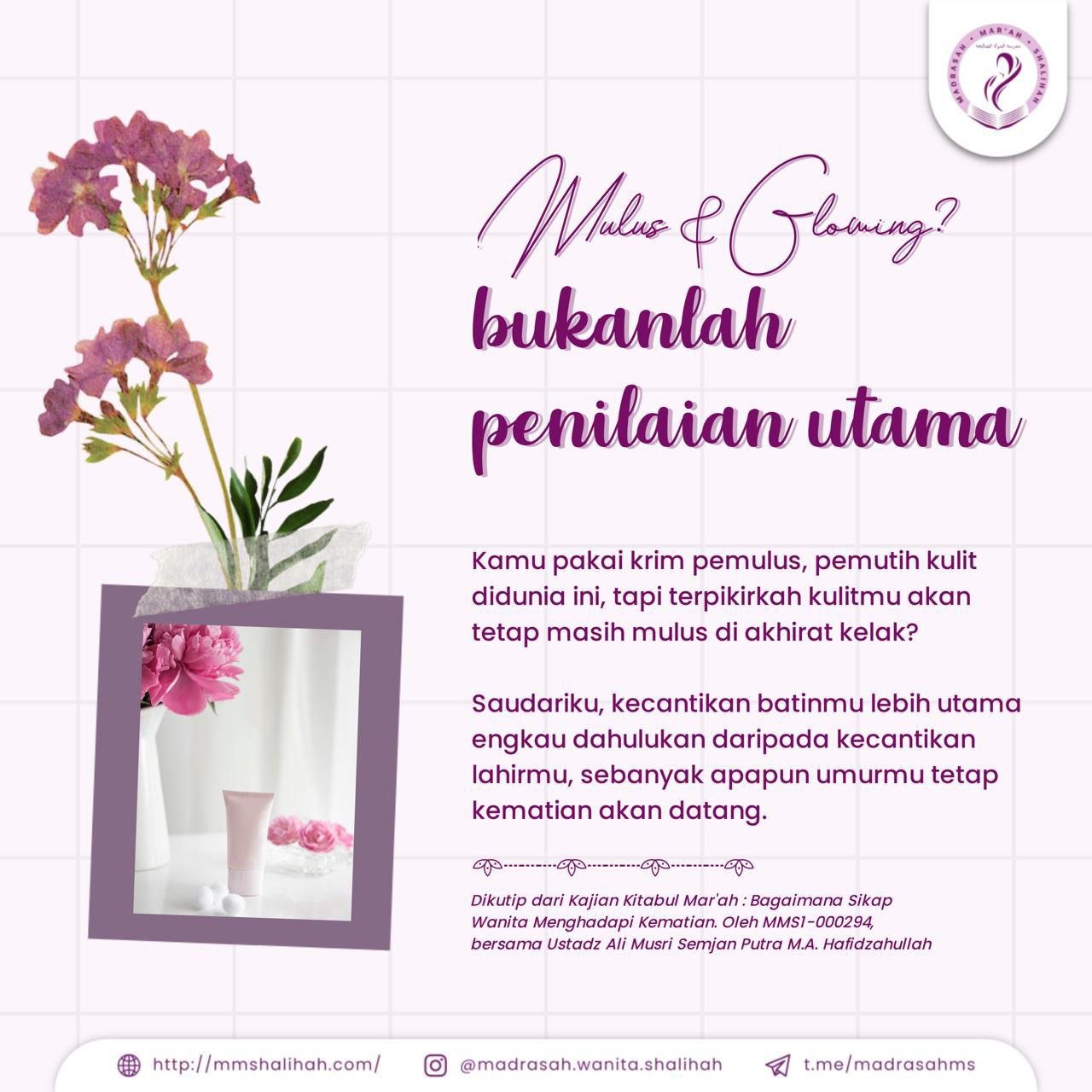 Kamu pakai krim pemulus, pemutih kulit didunia ini, tapi terpikirkah kulitmu akan tetap masih mulus di akhirat kelak? Saudariku, kecantikan