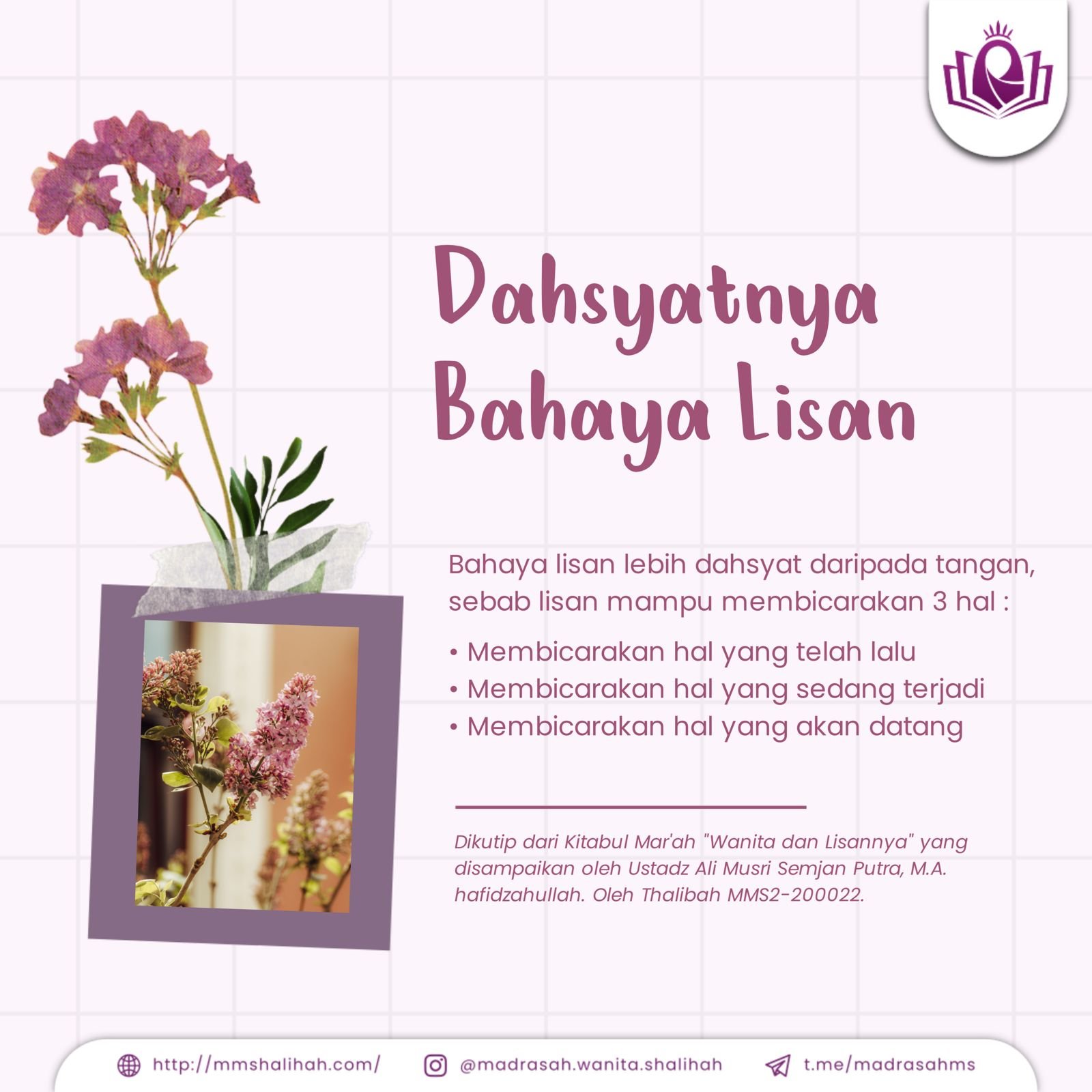 Bahaya lisan lebih dahsyat daripada tangan, sebab lisan mampu membicarakan 3 hal : 1. Membicarakan hal yang telah
