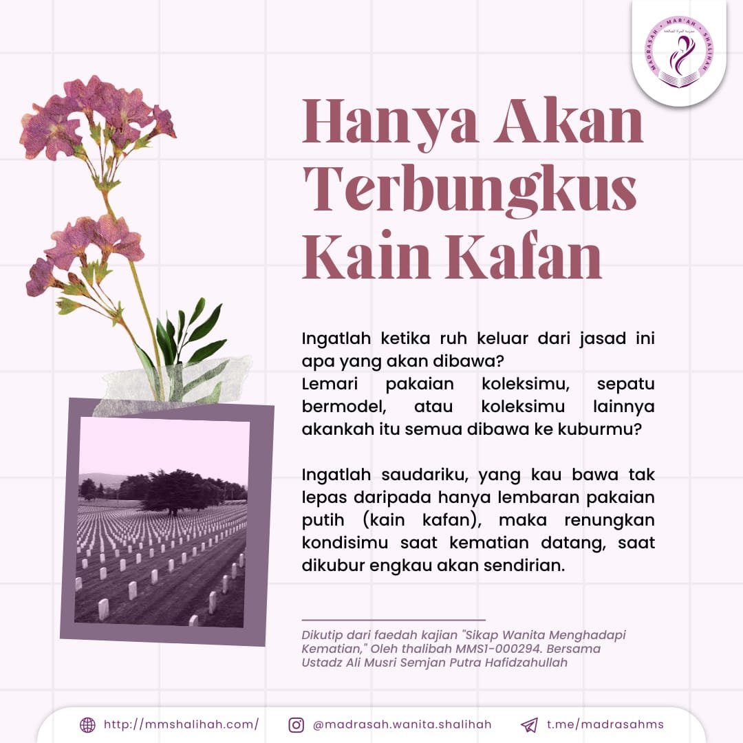 Ingatlah ketika ruh keluar dari jasad ini apa yang akan dibawa? Lemari pakaian koleksimu, sepatu bermodel, atau koleksimu lainnya akankah itu
