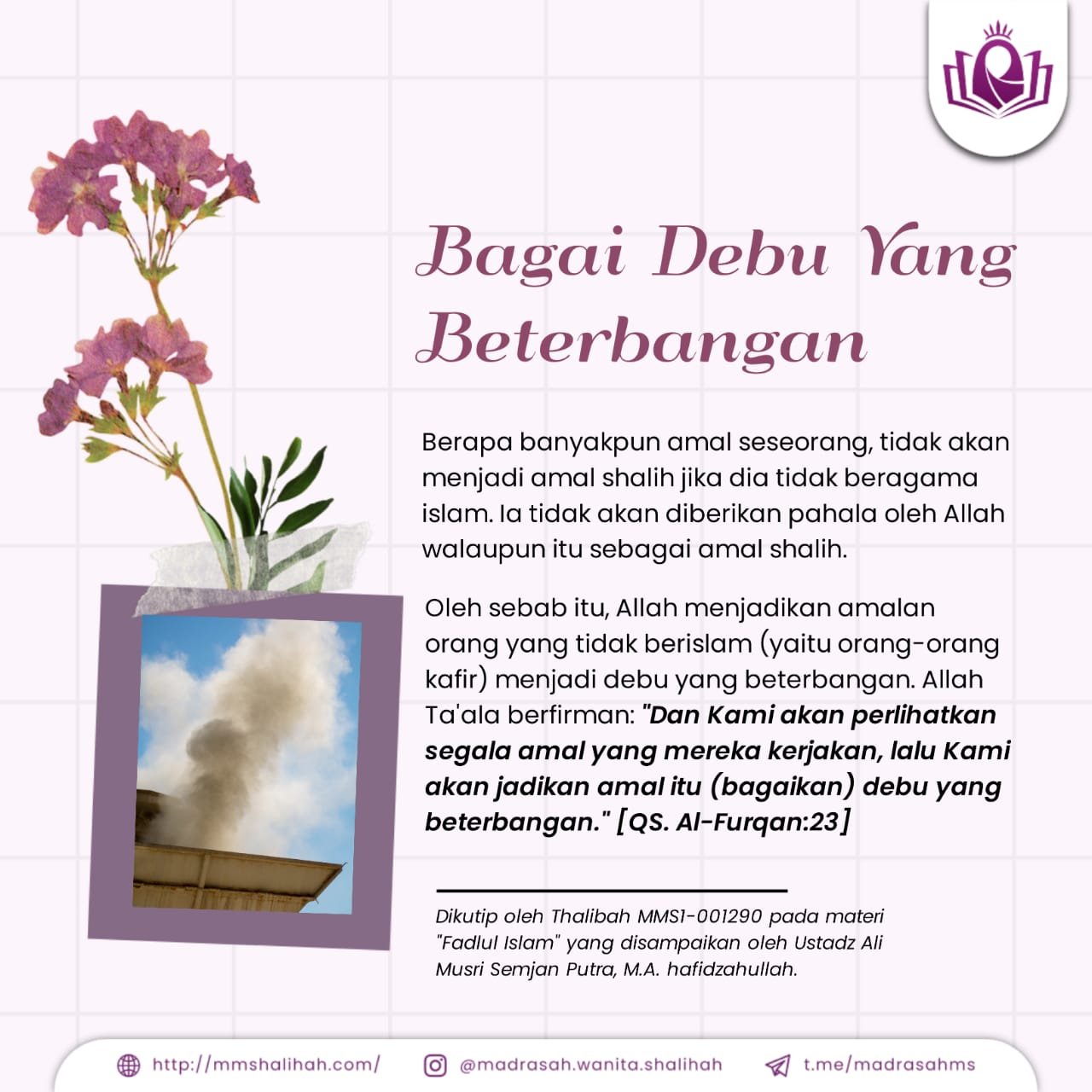 Berapa banyakpun amal seseorang, tidak akan menjadi amal shalih jika dia tidak beragama Islam. Ia tidak akan diberikan pahala oleh Allah