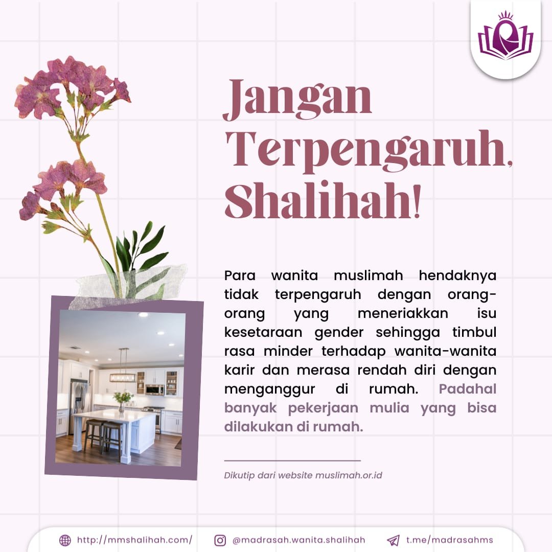 Para wanita muslimah hendaknya tidak terpengaruh dengan orang-orang yang meneriakkan isu kesetaraan gender sehingga timbul rasa minder terhadap wanita-wanita