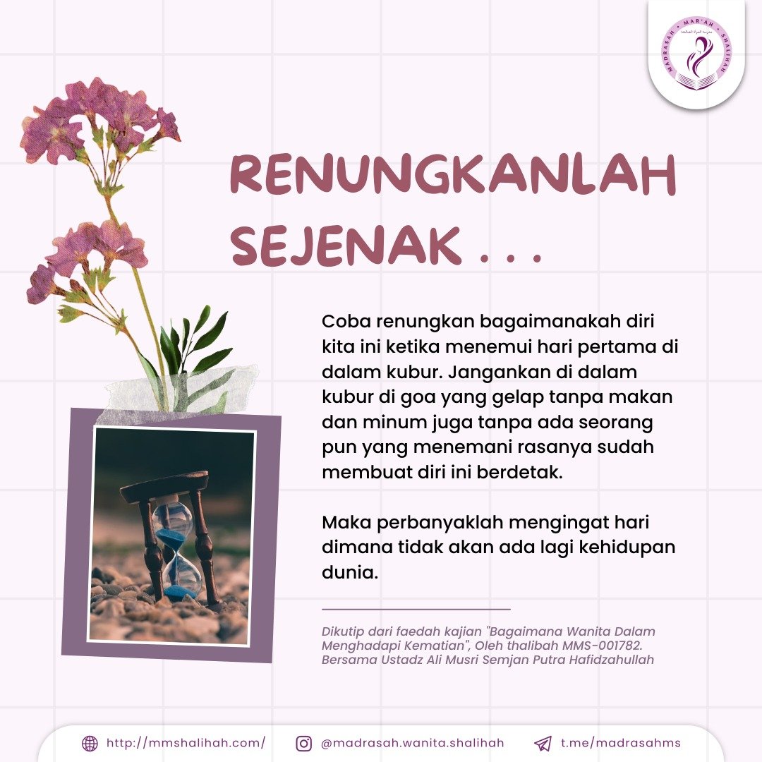 Coba renungkan bagaimanakah diri kita ini ketika menemui hari pertama di dalam kubur.
