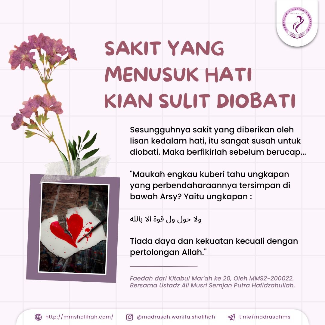 “Sesungguhnya sakit yang diberikan oleh lisan kedalam hati, itu sangat susah untuk diobati.