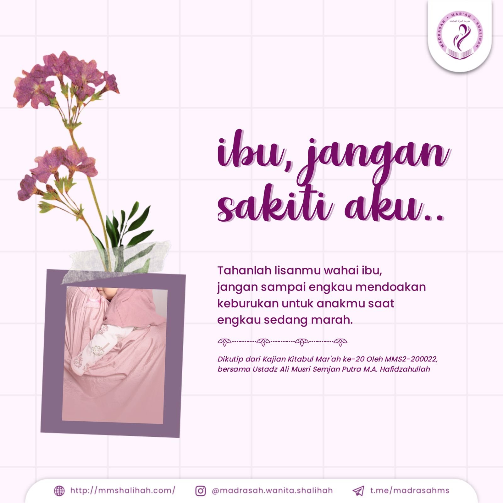 Tahanlah lisanmu wahai ibu, jangan sampai engkau mendoakan keburukan untuk anakmu saat engkau sedang marah. Doa orang tua