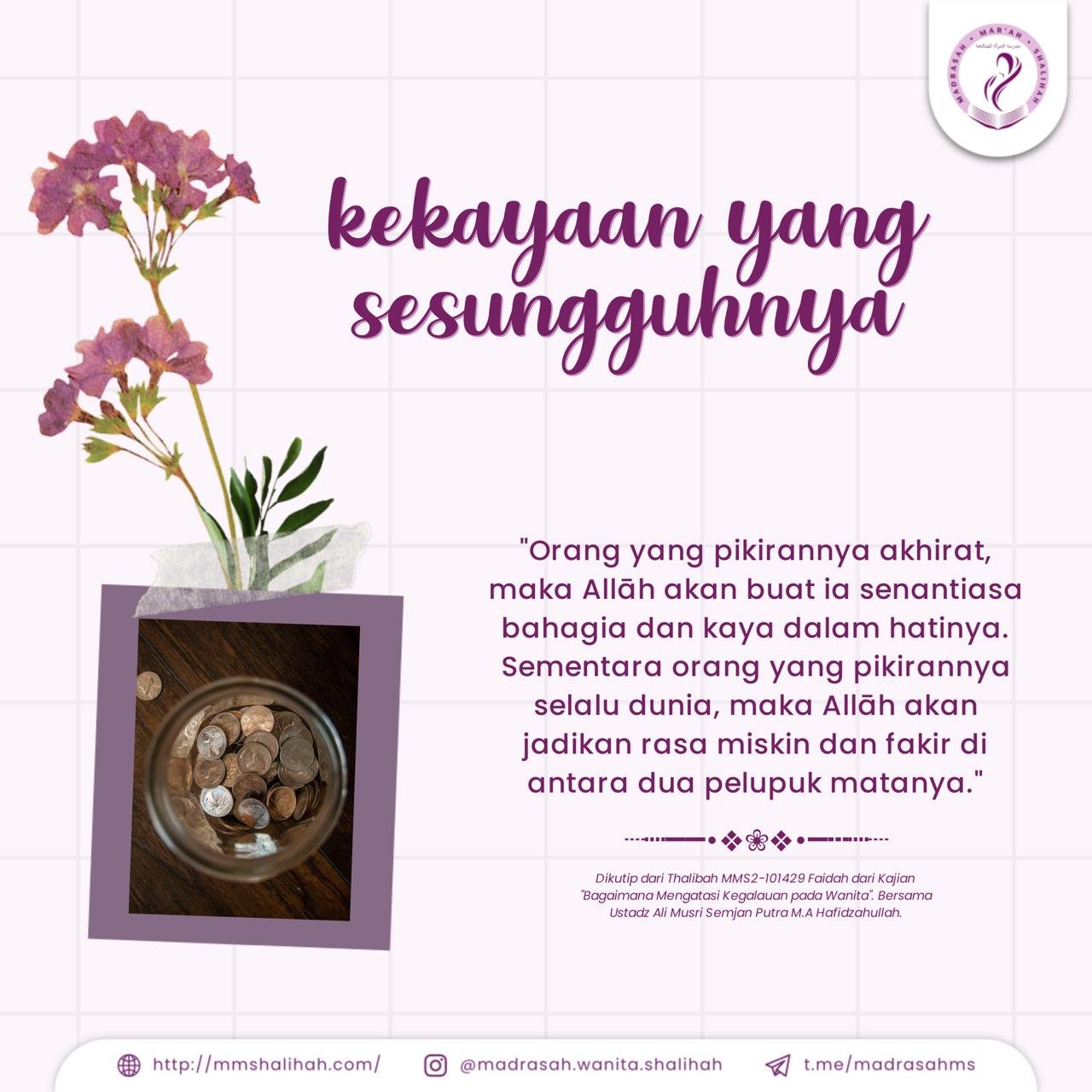 “Orang yang pikirannya akhirat, maka Allāh akan buat ia senantiasa bahagia dan kaya
