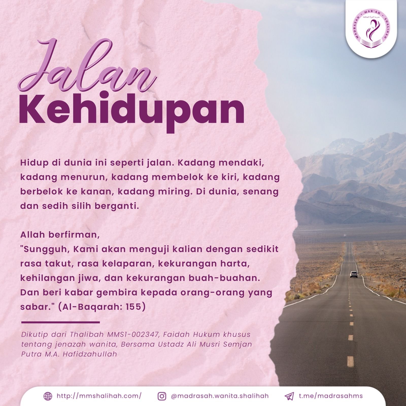 Hidup di dunia ini seperti jalan. Kadang mendaki, kadang menurun, kadang membelok ke kiri, kadang berbelok ke kanan, kadang miring. Di