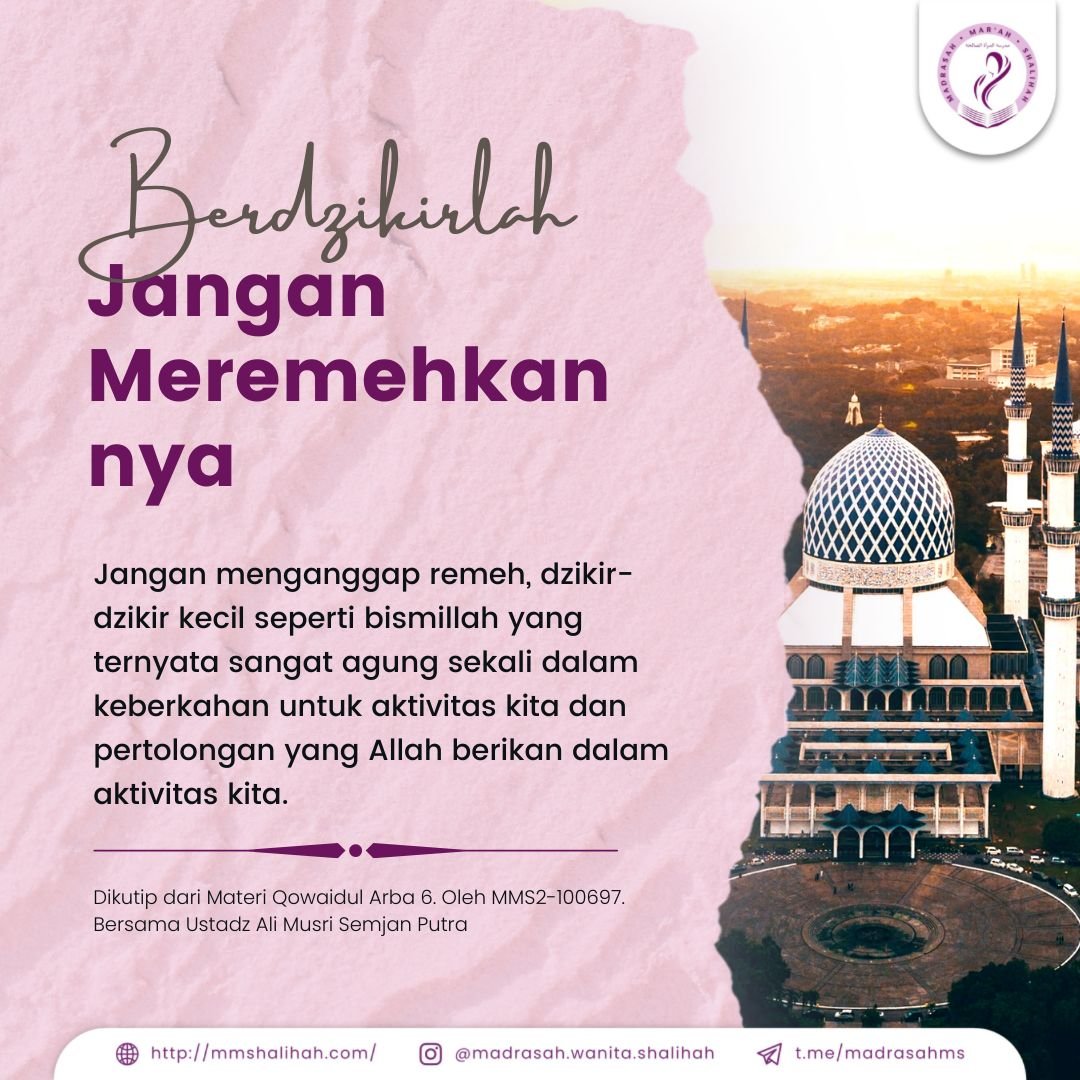 Jangan menganggap remeh, dzikir-dzikir kecil seperti bismillah yang ternyata sangat agung sekali dalam keberkahan untuk aktivitas kita dan pertolongan