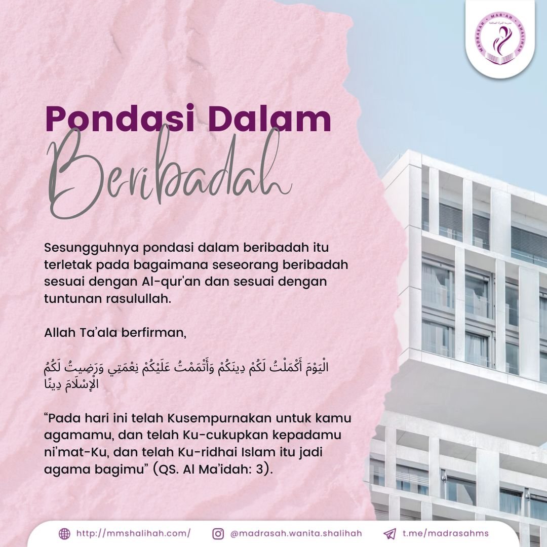 Sesungguhnya pondasi dalam beribadah itu terletak pada bagaimana seseorang beribadah sesuai dengan Al-Qur’an dan sesuai dengan tuntunan Rasulullah.