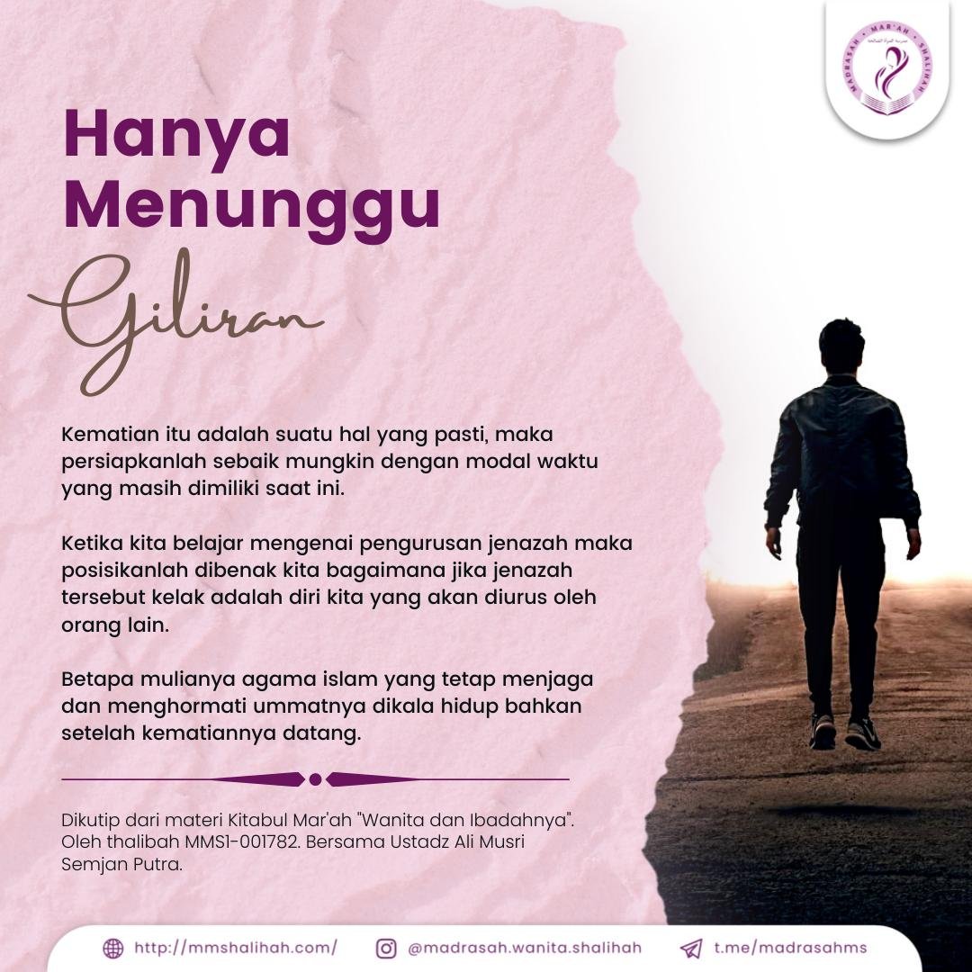 Kematian itu adalah suatu hal yang pasti, maka persiapkanlah sebaik mungkin dengan modal waktu yang masih dimiliki saat ini. Ketika kita