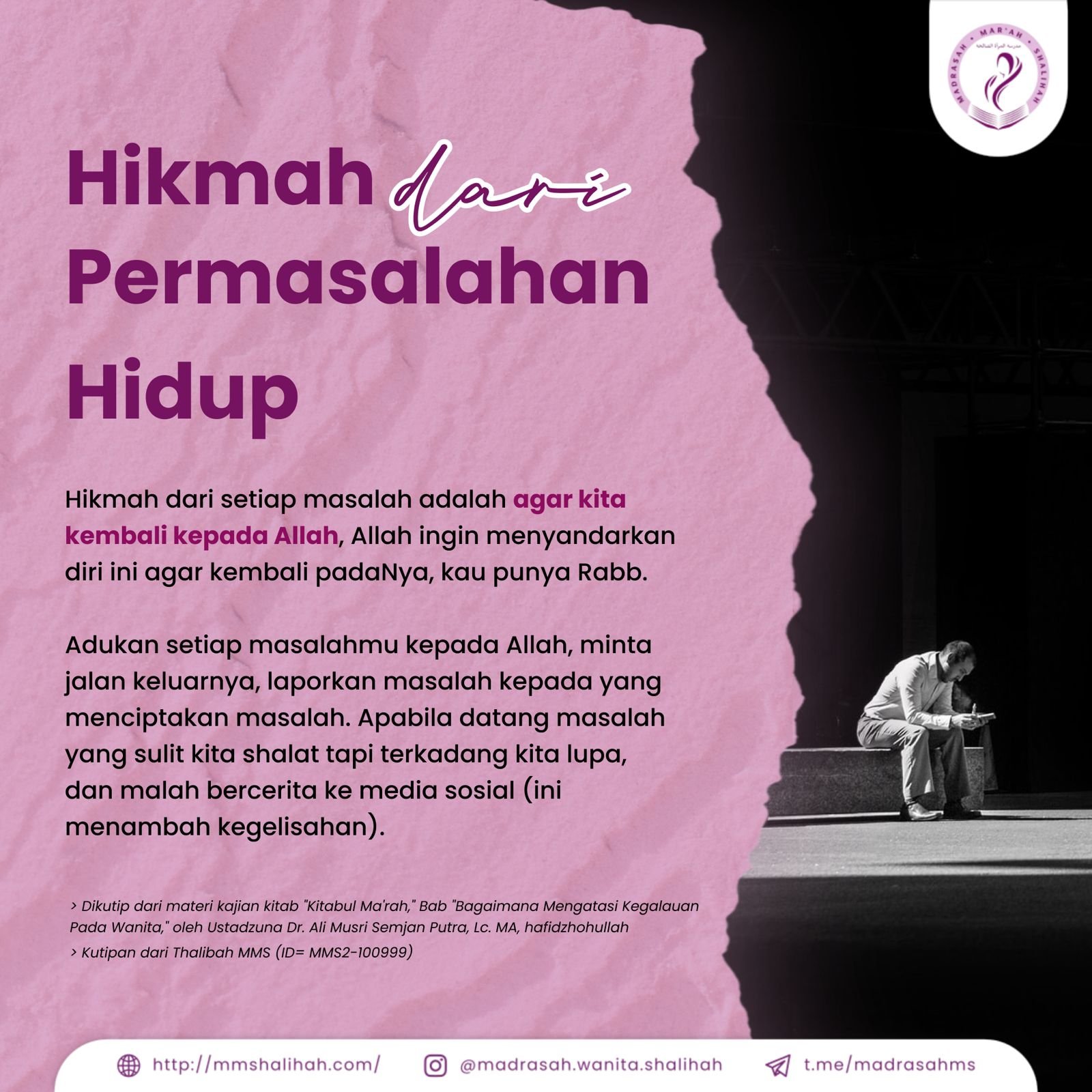 Hikmah dari setiap masalah adalah agar kita kembali kepada Allah, Allah ingin menyandarkan diri ini agar kembali padaNya, kau