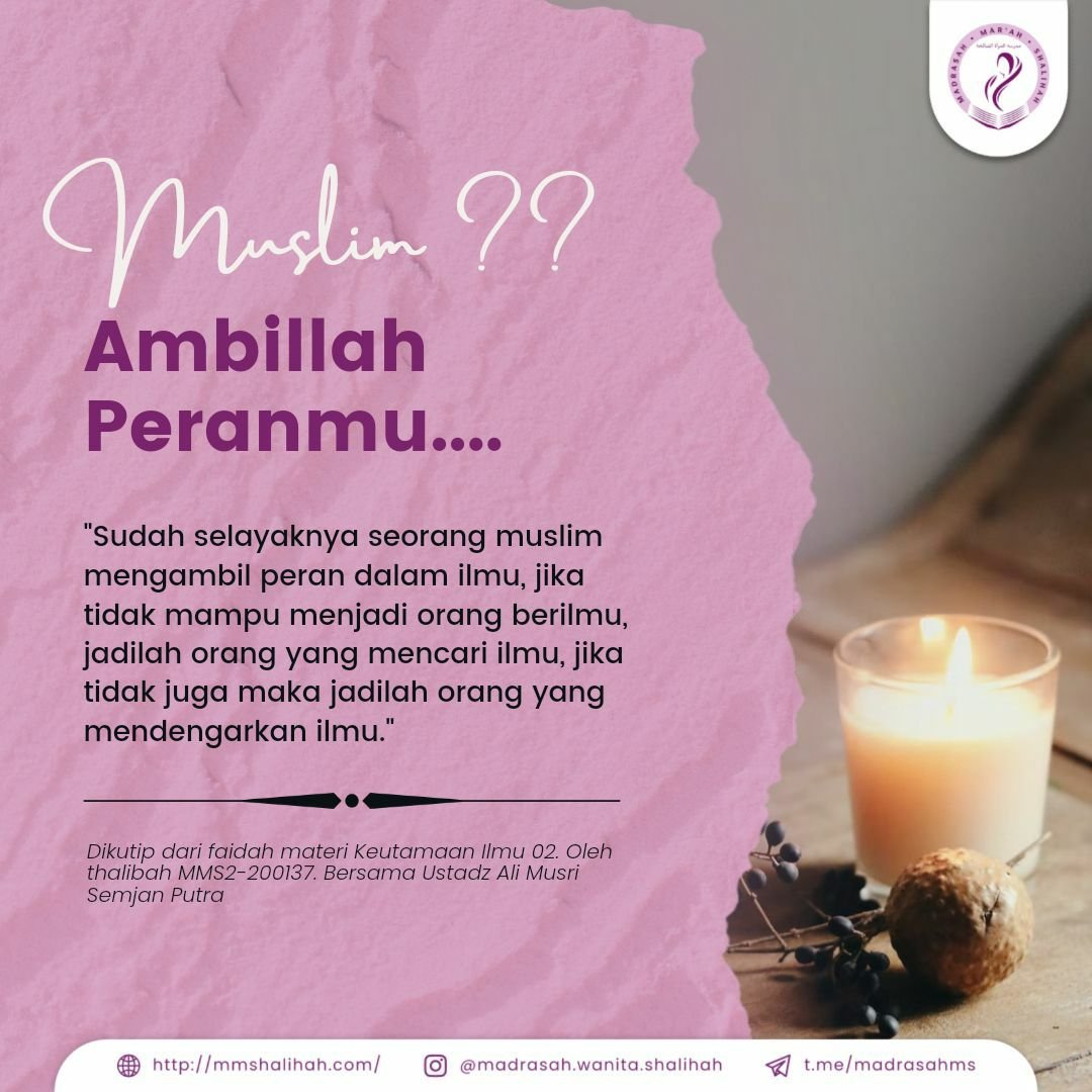 “Sudah selayaknya seorang muslim mengambil peran dalam ilmu, jika tidak mampu menjadi orang berilmu, jadilah orang yang mencari ilmu, jika tidak