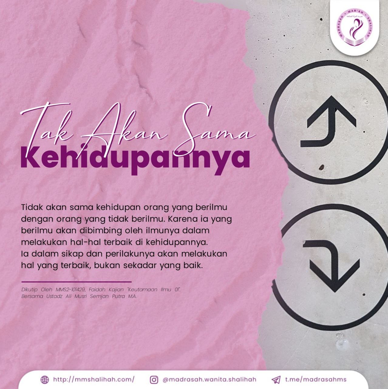 Tidak akan sama kehidupan orang yang berilmu dengan orang yang tidak berilmu. Karena ia yang berilmu akan dibimbing oleh