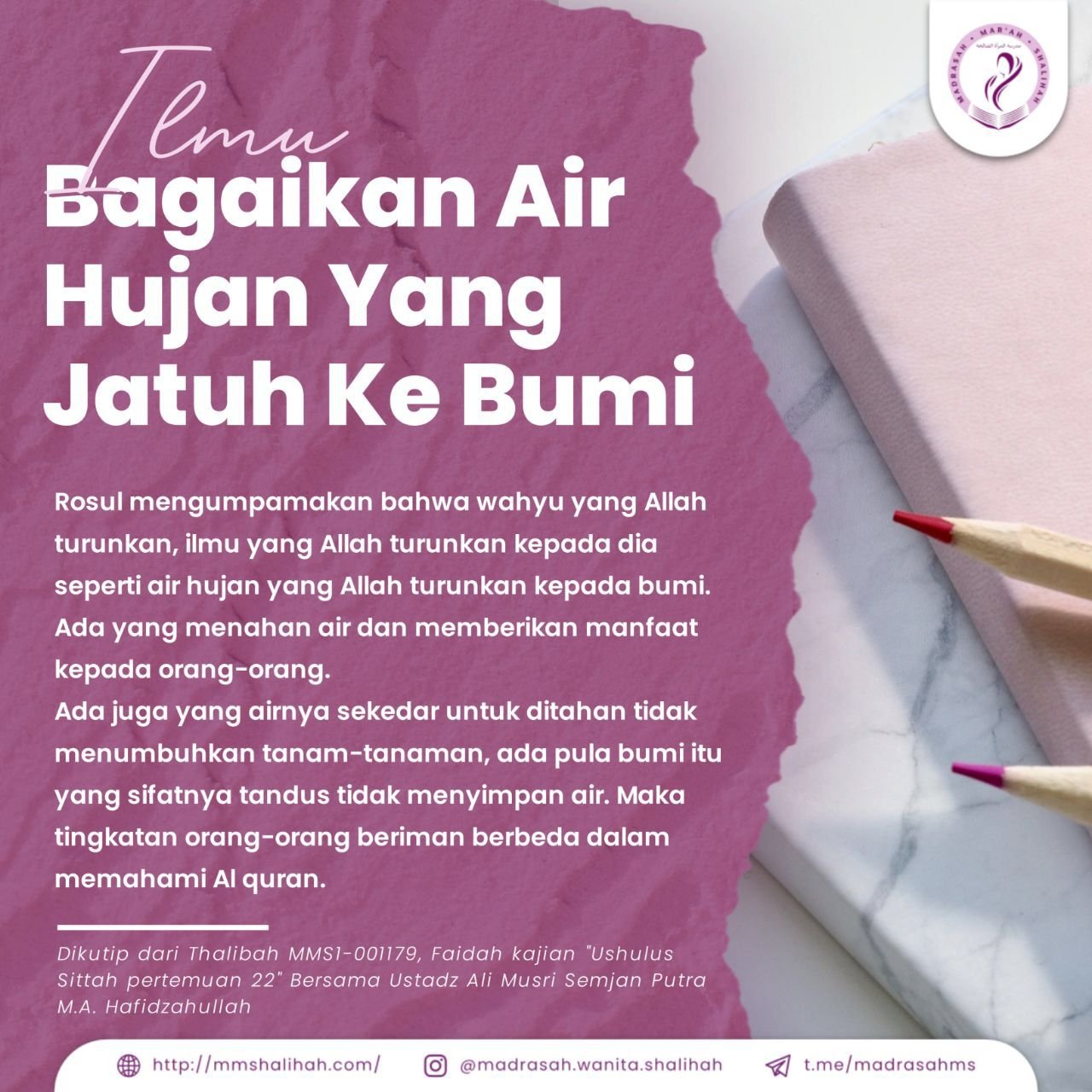 Rasul mengumpamakan bahwa wahyu yang Allah turunkan, ilmu yang Allah turunkan kepada dia seperti air hujan yang Allah turunkan kepada bumi.