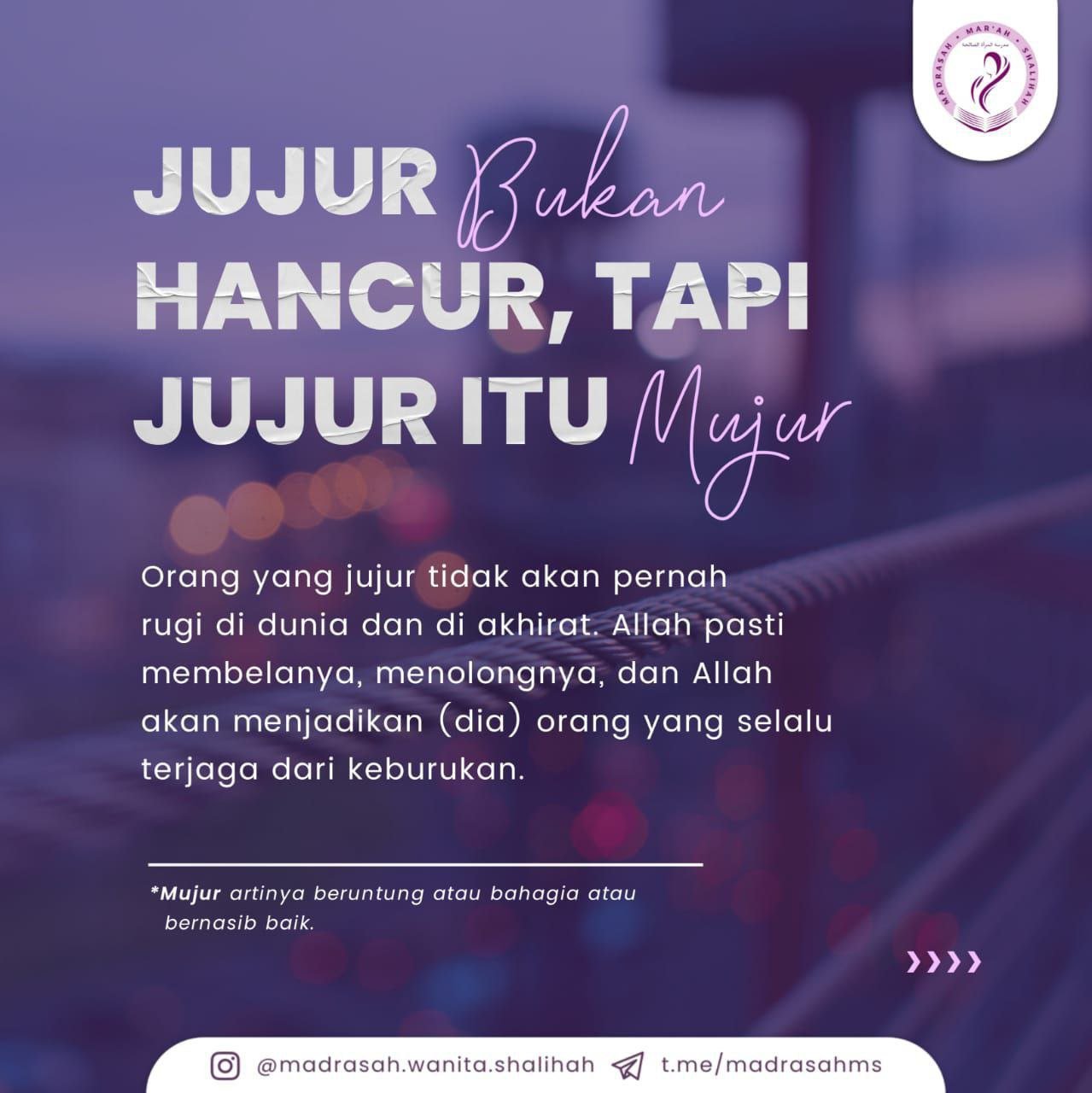 Orang yang jujur tidak akan pernah rugi didunia dan diakhirat. Allah pasti membelanya, menolongnya, dan Allah akan menjadikan (dia)