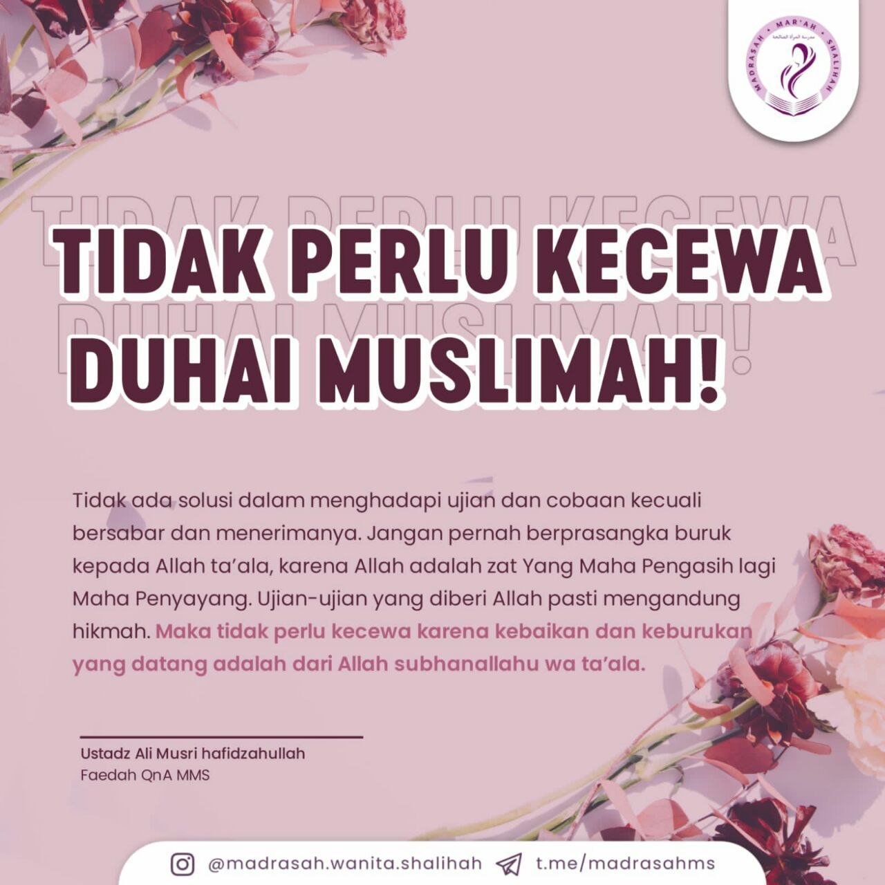 Tidak ada solusi dalam menghadapi ujian dan cobaan kecuali bersabar dan menerimanya.Jangan pernah berprasangka buruk kepada Allah ta’ala, karena