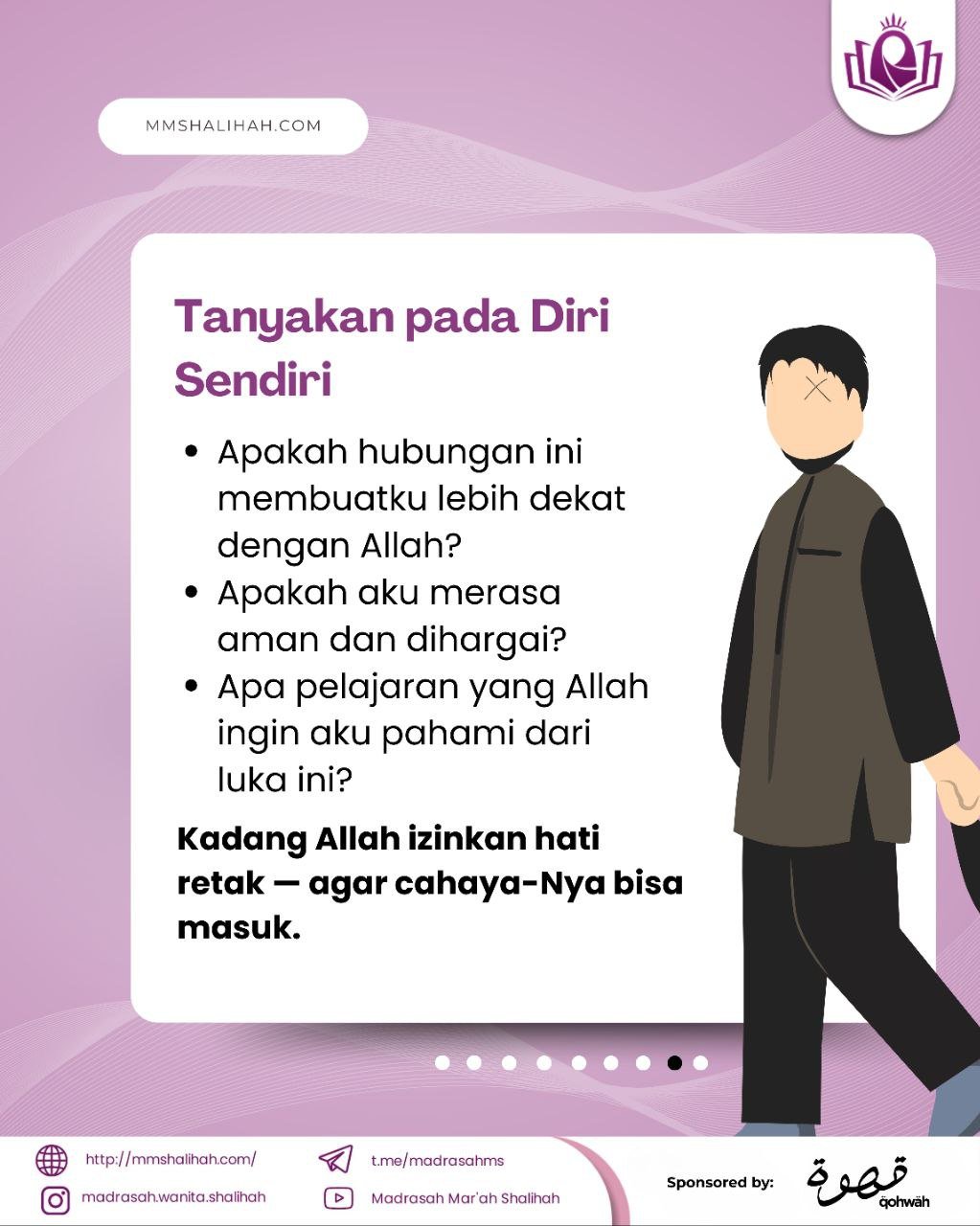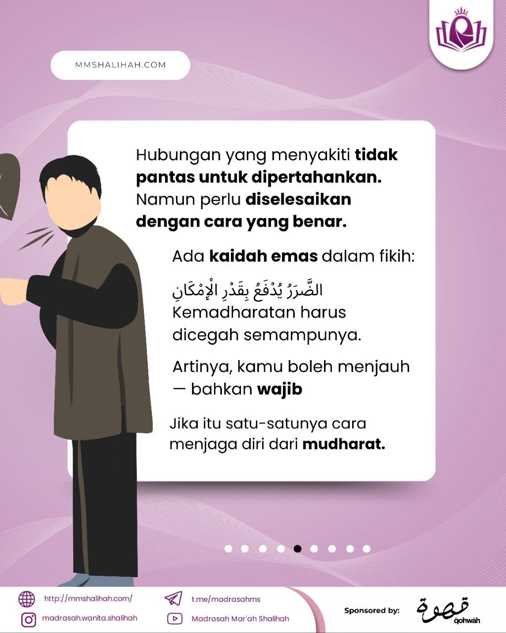 Padahal, Allah tidak ingin kamu bertahan dalam luka yang Ia tidak ridai. Ada kaidah yang bisa kita terapkan ๐ท