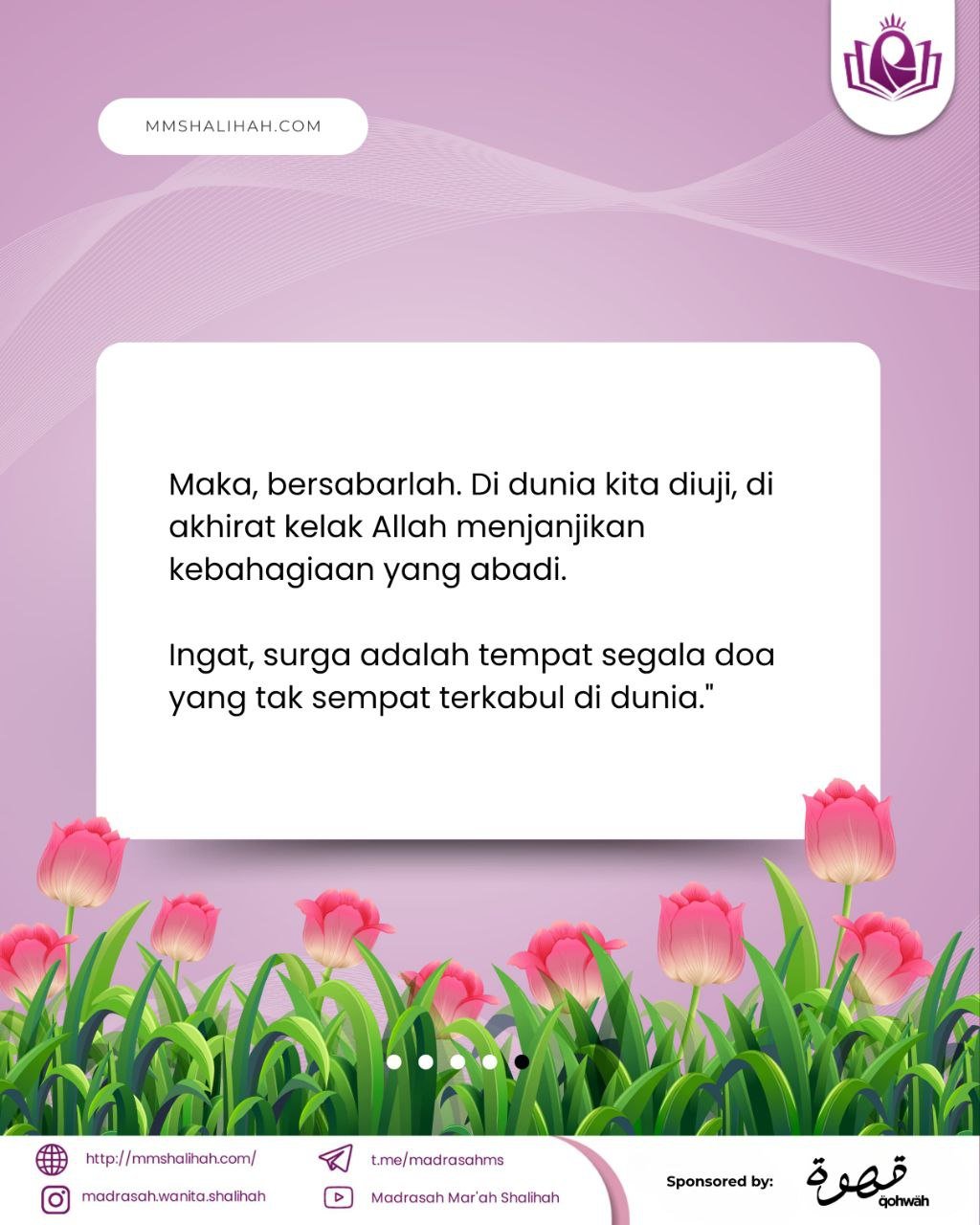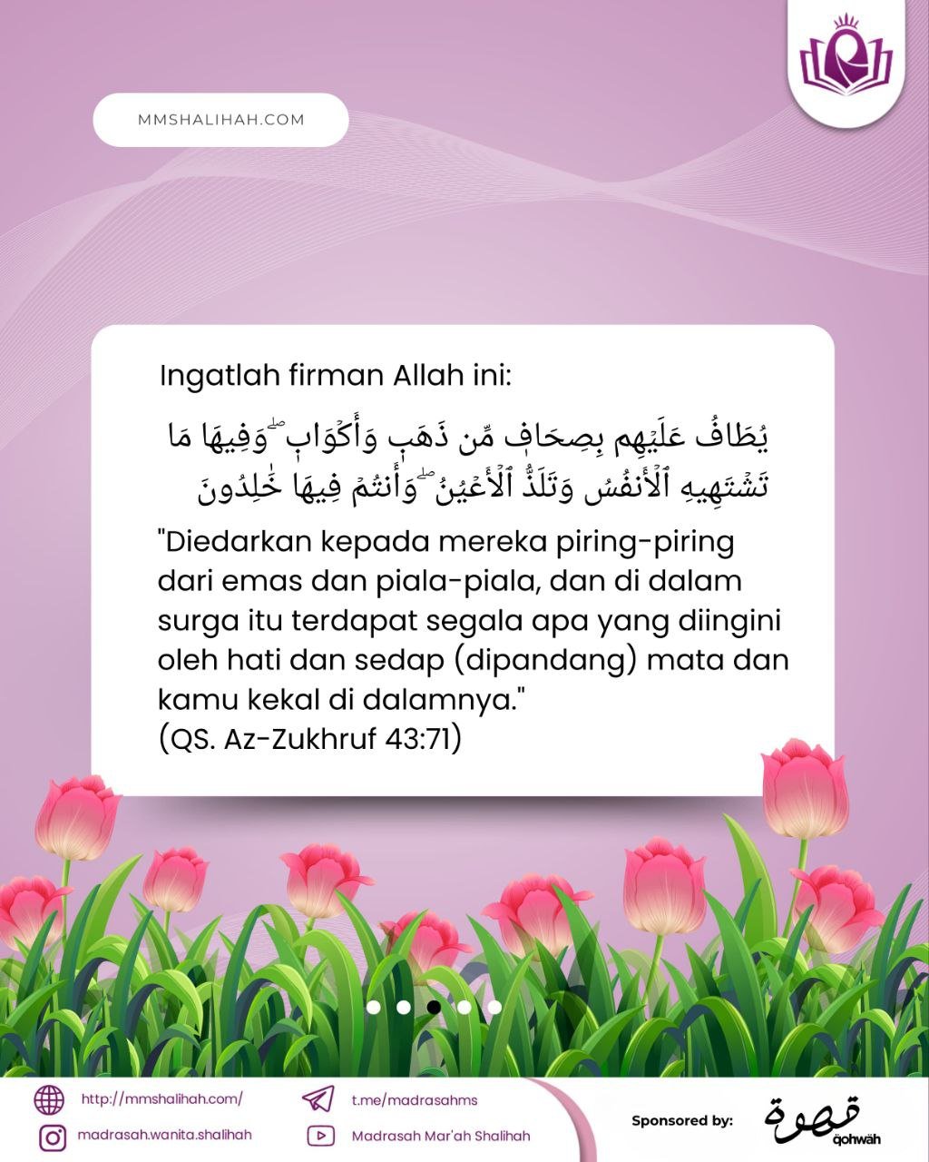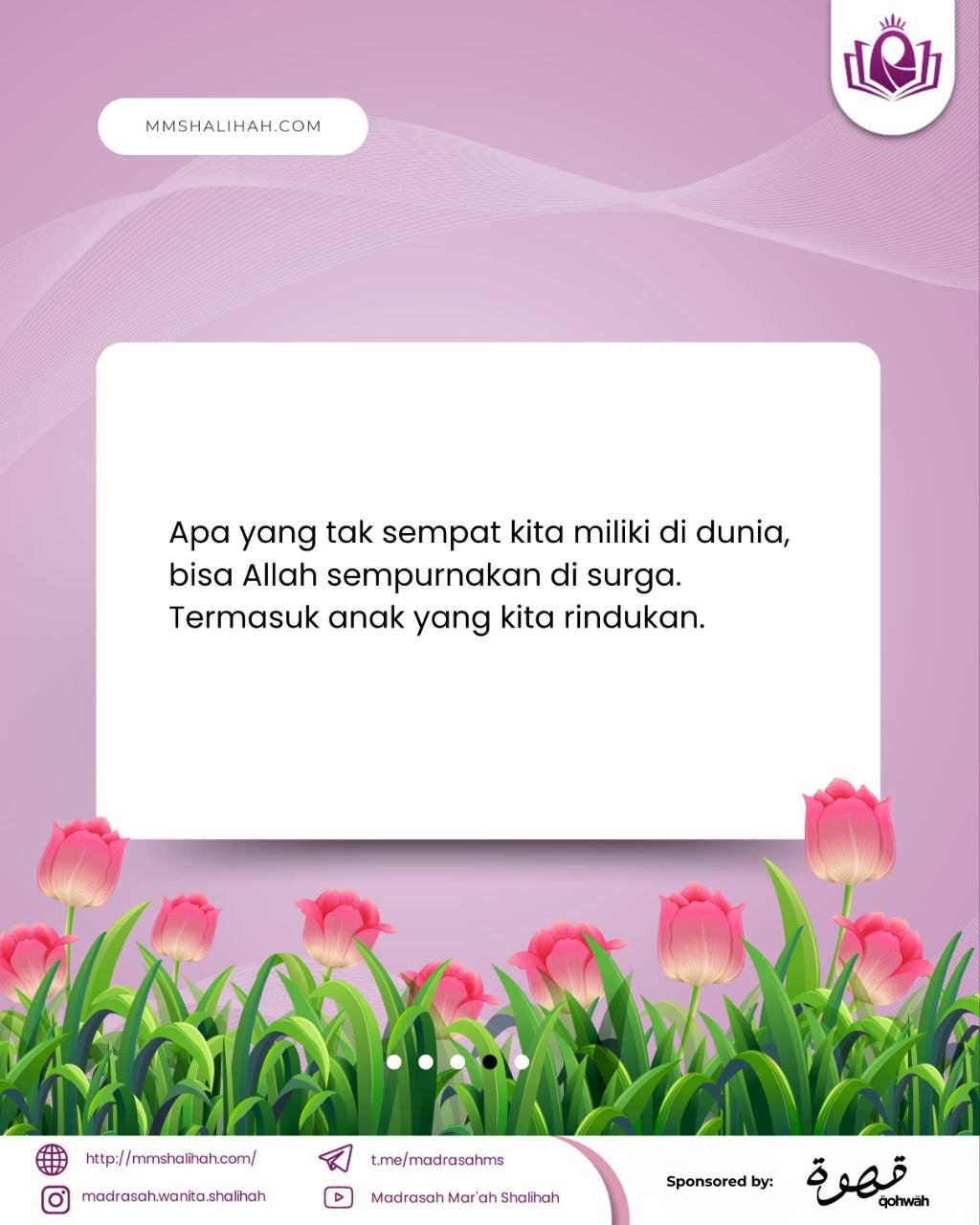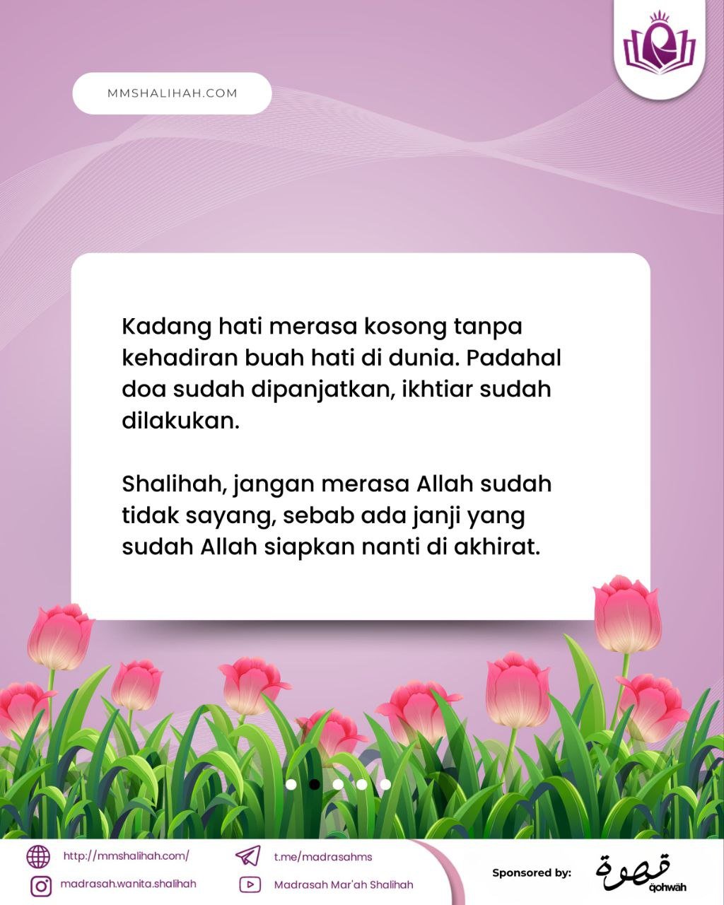 Termasuk doa tentang hadirnya buah hati. Sebagaimana yang telah dijelaskan di QS. Az-Zukhruf ayat 71, kita akan mendapatkan apa yang kita inginkan nanti di surga. Jadi, bersabarlah dan percaya bahwa janji Allah itu pasti🤍